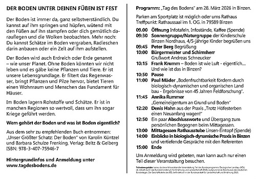Diverse Referate, u.a. von Paul Mäder, langjähriger Leiter des Departments für Bodenwissenschaften am FiBL zum Thema: «Bodenfruchtbarkeit fördern durch biologisch-dynamischen und -organischen Ackerbau – Ergebnisse von 45 Jahren Feldforschung»