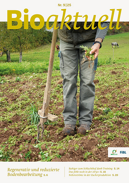 In der aktuellen Ausgabe des Bioaktuell-Magazins (9|25) steht die regenerative Landwirtschaft im Fokus: Von der Frage, wie sich regenerative und biologische Systeme ergänzen, über Praxiserfahrungen mit reduzierter Bodenbearbeitung bis hin zu Forschungsergebnissen aus dem Frick-Versuch des FiBL. Porträts und Interviews zeigen, wie Biobetriebe mit Geduld und Experimentierfreude stabile, bodenschonende Systeme entwickeln.