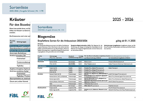 Die Sortenlisten stehen im FiBL-Shop als Gratisdownload zur Verfügung: