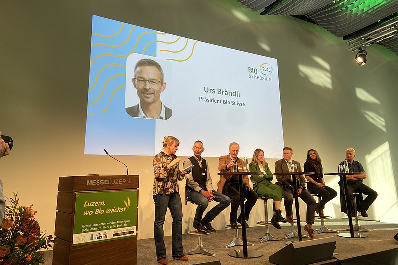 Zum Auftakt ergriff André Liner vom Berufsbildungszentrum Natur und Ernährung (BBZN) im Gastgeberkanton das Wort. Seine Institution hatte den Anlass gemeinsam mit Bio Suisse, Bio Inspecta, Bionetz, Swiss Organics, Demeter und FiBL auf die Beine gestellt.