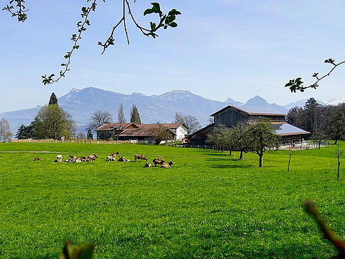 Szenenwechsel: Vor unseren Augen neigt sich die Horwer Halbinsel sanft gegen den Vierwaldstättersee hinunter. Kräftige Hochstammbäume und saftige Wiesen wechseln sich mit stattlichen Gehöften ab. Hier, am gegenüberliegenden Ende von Luzern, zieht die exklusive Lage mit Blick auf See und Berge finanzkräftige Zeitgenossen auf der Suche nach einer gediegenen Immobilie an. Zwischen Villen und anderen Wohnobjekten haben Walter und Ueli Unternährer mit ihren Familien auf dem Mättiwilhof in den letzten Jahren ein Stück Schweizer Landwirtschaftsgeschichte geschrieben. Die ersten Natura-Beef gingen durch die Viehhandlung der Mutterkuh-Pioniere. 1989 stellten sie auf Bio um. Später konzentrierten sich Walter und Ueli ganz auf die Landwirtschaft, Fleischverarbeitung und Direktvermarktung und der Neffe bzw. Cousin übernahm die Viehhandlung. Dem Hofladen folgten eine eigene Fleischverarbeitung in einer gemieteten Metzgerei und die Belieferung von Wiederverkäufern in der Region. Die Marke Ueli Hof war entstanden.