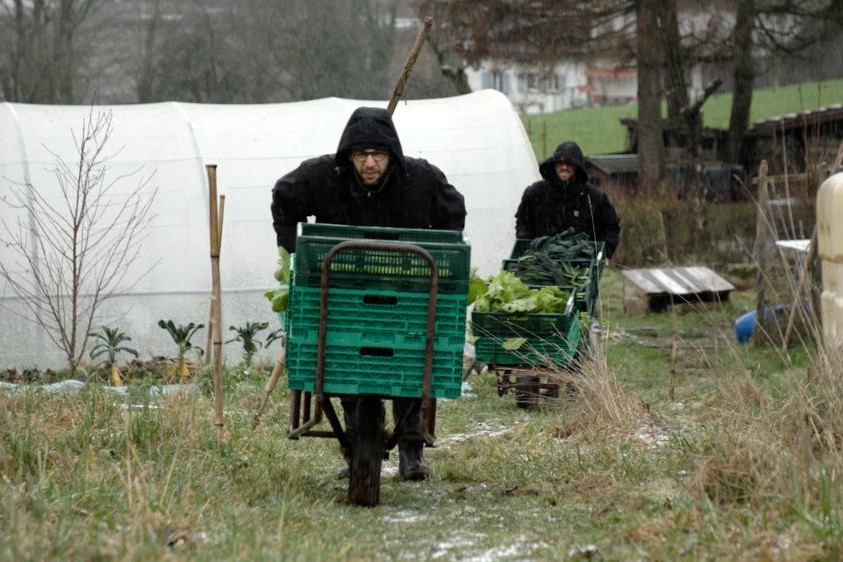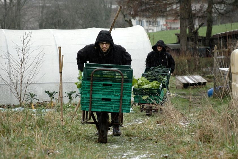 Einmal pro Woche begab sich der Filmemacher Alain Wirth in die Höhen von Vevey – ob Regen, Schnee oder drückende Hitze, ob die Ernte auf Hochtouren lief oder die Stimmung am Boden war. Er stellte seine Kamera zwischen die Gemüsebeete, begleitete die Produzenten bei ihrer Arbeit und ihren Überlegungen und fügte sich buchstäblich ein in das Leben eines Bauernhofes im Laufe der Jahreszeiten.