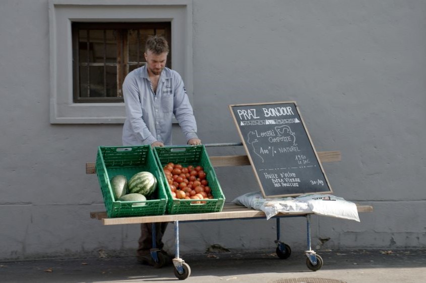 Praz Bonjour ist ein zweieinhalb Hektar großer Betrieb in Blonay oberhalb der Gemeinde Vevey. Pierre-Gilles Sthioul und Antoine Meier bauen dort über 200 Sorten Obst und Gemüse an – ohne Hilfsmittel und fast ausschließlich von Hand. Die beiden Neu-Landwirte haben sich aus Idealismus dafür entschieden, ihre früheren Berufe aufzugeben und sich der Landwirtschaft zu widmen. Pierre-Gilles war ursprünglich Koch, arbeitete nach seinem Studium an einer Universität für NGOs im Bereich nachhaltige Entwicklung und Nord-Süd-Beziehungen. Antoine war Maler und selbstständiger Unternehmer im Bereich Renovierung.