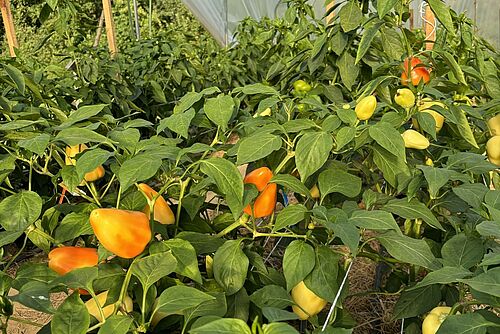 Die Paprika-Sorten des Versuches unterscheiden sich stark von den gewöhnlichen Supermarkt-Paprika. Auf mehreren Präsentiertellern lagen für die Besucher des Flurganges die drei Tomatenpaprika «Gelber», «Dottergelber» und «Rot» sowie die zwei spitzförmigen Sorten «Fasli» und «Somborka». Bei den letzteren beiden Sorten war die Notiz angebracht: «Achtung, scharf». Zur Überraschung der Besucher waren zwei der Versuchssorten tatsächlich pikant beim Verzehr.