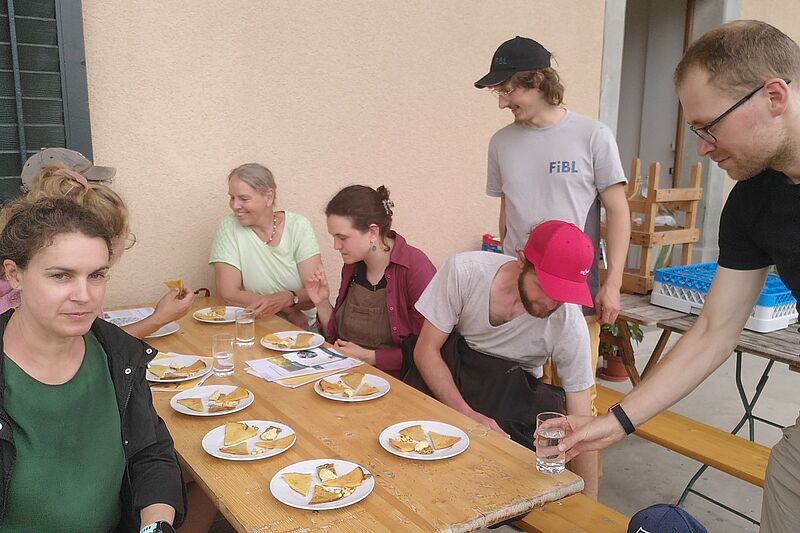 Den kulinarischen Abschluss des Tages bildete die Verkostung des traditionell aus Kichererbsen hergestellten italienischen Fladens «Farinata» in drei Varianten: aus Kichererbsen, Erbsen und Platterbsen aus dem Projekt Projekt Divinfood. Lupinen gab es als Snack in Form ganzer Bohnen, als Cracker und als Brotaufstrich zu probieren.