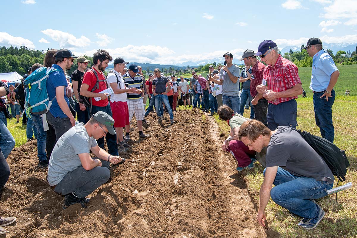 An 17 frei wählbaren Feldposten wurde von Fachleuten Wissenswertes zu verschiedenen Bio- Ackerkulturen vermittelt - unter anderem zu Zuckerrüben, Futterbau, Raps, Kartoffeln, Mais, Weizen sowie Alternativen wie Hirse, Speisehafer oder Lein. Die Besucherinnen und Besucher konnten ihre Fragen, Ideen und Erfahrungen direkt mit Expertinnen und Experten sowie mit Berufskolleginnen und -kollegen diskutieren. Insbesondere Themen rund um den Boden wurden aufgegriffen. Ferner gab es Demonstrationen zu den neuesten Entwicklungen in der Unkrautregulierung.