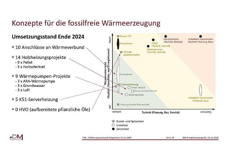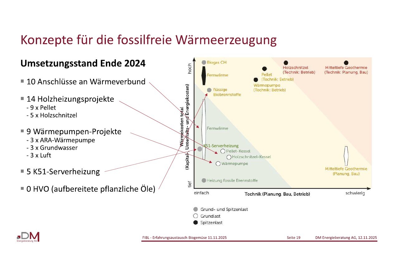 Wichtig ist laut Daniel Meier die richtige Dimensionierung der Heizung. «Früher wurden Anlagen auf Spitzenlasten mit 1800 Kilowatt ausgelegt – heute reichen oft 600 Kilowatt plus ein Wärmespeicher mit 200 Kubikmetern», erklärte Meier. Alte Ölkessel könnten als Reserve stehen bleiben, um die Versorgungssicherheit zu Spitzenzeiten und im Notfall zu gewährleisten.