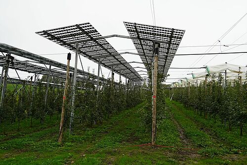«Die Idee hinter der Agri-Photovoltaik ist so einfach wie genial: Auf der gleichen Fläche wird mehrfach geerntet.» Mit diesem Statement brachte Markus Dieth, Aargauer Landammann und Landwirtschaftsdirektor, seine Begeisterung für das AgriSolar genannte Projekt zum Ausdruck. Die FiBL Apfelplantage (Niederstamm) werde künftig nicht nur Früchte hervorbringen, sondern auch Elektrizität liefern. Die rund 600 Quadratmeter grosse Anlage dürfte jährlich gut 50 Megawattstunden produzieren.