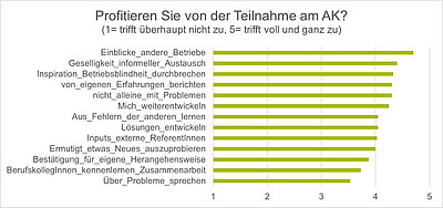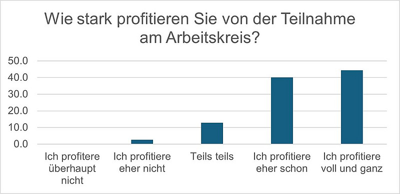 Nach fünf Jahren wollten wir wissen, welche Wirkung das Projekt tatsächlich hat. Auch wenn ich schon viele positive Rückmeldungen erhalten hatte, wollte ich handfeste Zahlen. Uns interessierte zum Beispiel, ob alle Themen relevant sind und welchen konkreten Nutzen die Gruppen bringen. Die Rücklaufquote der Umfrage war gut, und die Resultate zeigen ein sehr positives Bild – mit wichtigen Hinweisen für die Weiterentwicklung.
