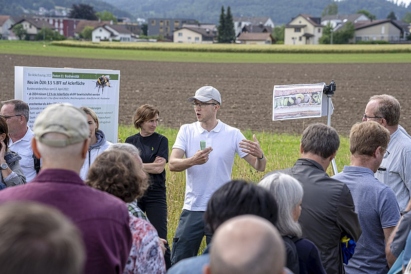 Hansueli Dierauer vom FiBL, einer der Mitbegründer des Bioackerbautags und Mitglied des Organisationskomitees, schildert die zwei Tage als sehr gelungen: «Dieses Jahr dauerte der Bioackerbautag zum ersten Mal zwei Tage, das war ein grosser Erfolg. Die Landwirte und Landwirtinnen waren begeistert, da mehr Zeit für den Austausch mit den Fachleuten an den Themenposten blieb. Wir haben sehr viele positive Rückmeldungen von Bäuerinnen und Bauern erhalten.»