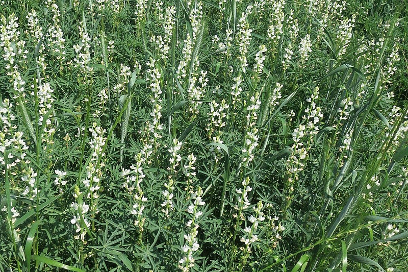 Blaue Lupine "Boruta", geeignet für die Tierfütterung, aber für den menschlichen Verzehr ist der Alkaloid-Gehalt immer noch zu hoch. Foto: Marina Wendling, FiBL