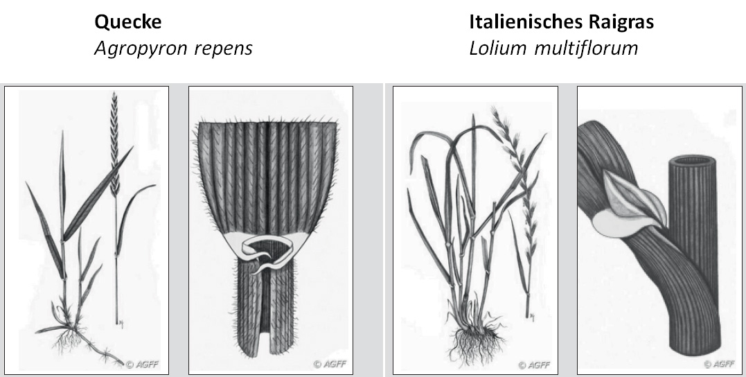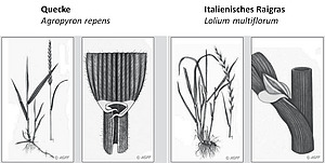 Die Quecke ist dem italienischen Raigras ähnlich. Man erkennt die Quecke an folgenden Merkmalen. Die Blätter sind bei der Quecke behaart, die Blätter sind steif, das Blatthäutchen kurz. Die Ähre ist bei der Quecke im Gegensatz zum italienischen Raigras dicht und die Ährchen sitzen mit der Breitseite am Halm. Die weissen, hartnäckigen Rhizome, die typisch für die Quecke sind, sind beim italienischen Raigras nicht vorhanden.