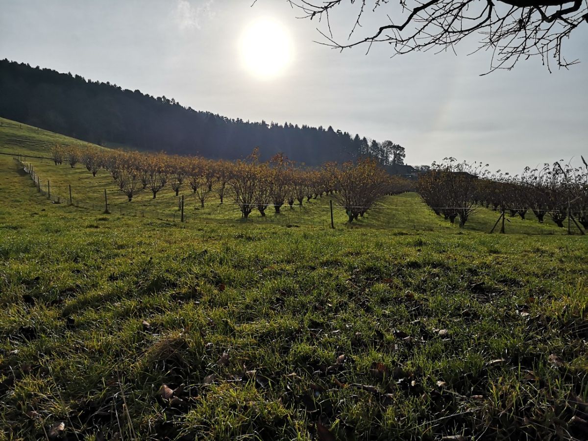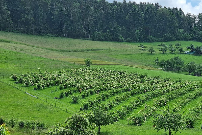 Franziska Schärer pflanzte ihre erste Holunderparzelle im Jahr 2013. Seither hat sie die Fläche kontinuierlich erweitert; heute umfasst sie 1,1 Hektar. Die Ergebnisse der laufenden Versuche werden jährlich gemeinsam vom FiBL, Thomas Aeschlimann (Ricola AG) und Franziska Schärer besprochen und ausgewertet. Auf dieser Grundlage werden konkrete Massnahmen definiert und neue Versuchsschwerpunkte festgelegt.