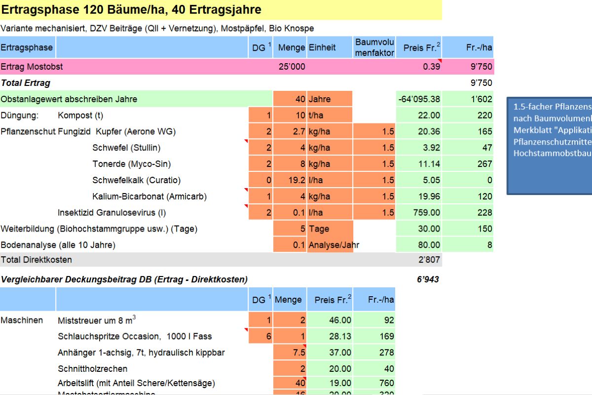 Die Modellrechnungen sind Bestandteil des FiBL Merkblattes «Biologischer Obstbau auf Hochstammbäumen».