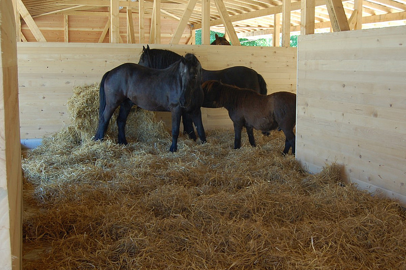 Wird ein neuer Stall gebaut, wählt man heute aus Kostengründen eher die Leichtbauweise aus Massivholz. Diese sind kostengünstig und flexibel. Eine Wärmedämmung ist nicht nötig.